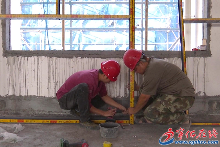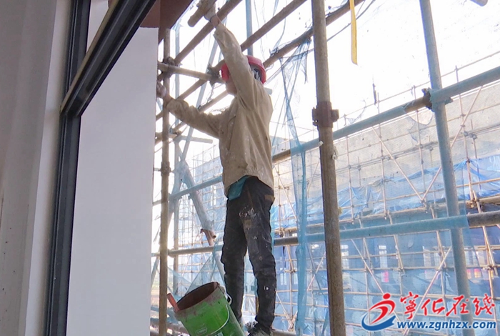 10月23日,在位于寧化縣城南工業園區的三煌智能嬰童家居用品生產項目建設現場,工人正進行門窗安裝、外墻砌裝等工作。