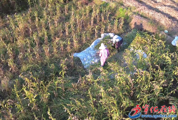 走進薏米田,高大的薏米桿隨風搖擺,農戶們用鐮刀將薏米齊腰割下,隨后進行脫粒。