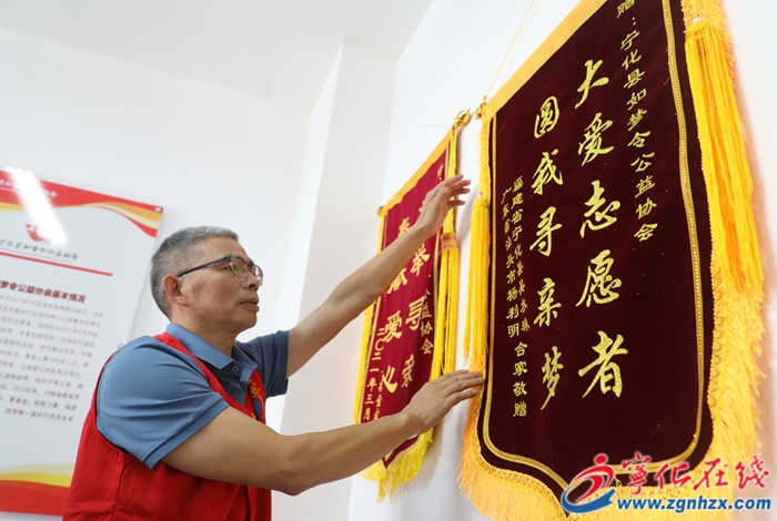 沒想到失聯這么久了,我們還能找到廣東汕頭的親人……”10月19日,寧化縣城南鎮茜坑村七旬老人吳水珠的女兒雷淑蘭將題有“大愛志愿者,圓我尋親夢”字樣的錦旗,交到寧化縣如夢令公益協會會長張銀珠手中,感激之情溢于言表。“夢歸潮汕”寧化助尋分隊隊長范錄盛鄭重地將錦旗掛上墻,為自己的第9次成功尋親畫上了一個圓滿的句號。