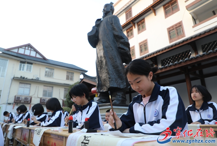 寧化是客家祖地、千年古縣,孕育了清代隸書巨匠伊秉綬等一批先賢名士。寧化六中屬福建省書法教育示范校,多年來積極推進“書香”“墨香”“詩香”校園文化建設,扎實開展書法教育。今年寧化六中舉辦紀念伊秉綬誕辰270周年系列活動,進一步傳承客家文化,打響書法教育品牌,提升師生綜合素養。