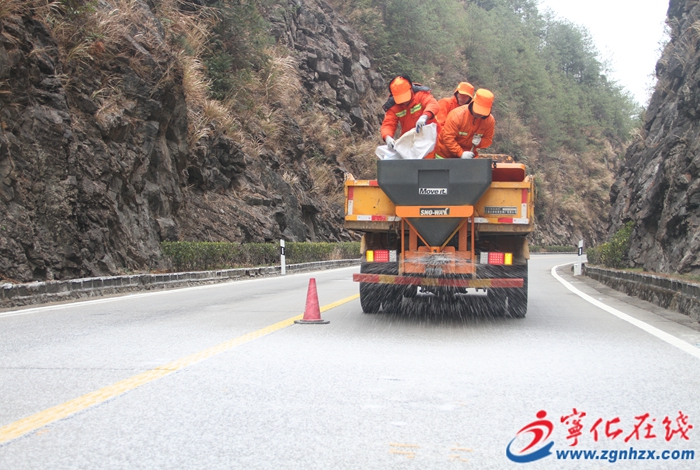 2月7日起,寧化公路分中心組織站班人員對轄區(qū)內(nèi)易結(jié)冰路段采用 “機(jī)械 + 人工” 的高效作業(yè)方式播撒融雪劑,確保道路不積雪、不結(jié)冰,為過往車輛提供安全的通行條件。