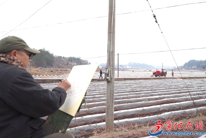 在石壁鎮江頭村,攝影家們深入田間地頭,用鏡頭捕捉村民、煙農和煙技員在春耕生產一線的動人瞬間;畫家們則現場揮毫,為村民們畫速寫,生動描繪春耕場景;文藝志愿者們將精心準備的“福”字、“春”字和速寫畫送到村民手中,為他們帶去關懷與溫暖。