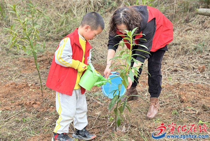 活動中,10名教師志愿者、10名幼兒志愿者與法院工作人員結(jié)對分工,揮鍬翻土、提水澆灌,共同栽種幼苗并掛上樹牌。法院工作人員還為孩子們講解森林防火知識,贈送繪本,在孩子們心中播撒下愛綠、護綠的種子。(通訊員 傅玉菲?顏琳)