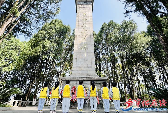 活動現(xiàn)場,全體人員在革命紀念碑前整齊列隊,懷著崇敬之心向革命先烈鞠躬默哀,深切表達對先烈們的崇高敬意。老師和學生代表獻上鮮花,并環(huán)繞紀念碑一周。隨后,孩子們瞻仰毛主席雕像與軍號嘹亮雕像,參觀革命紀念館,在老師講解下,真切感受革命先烈的艱辛與偉大,感受幸福生活的來之不易。