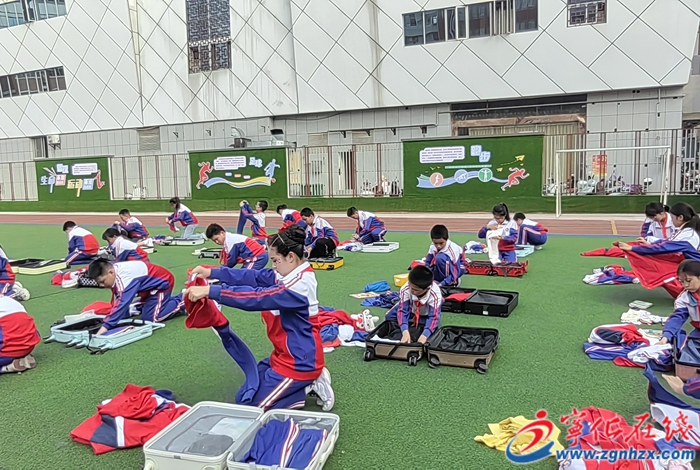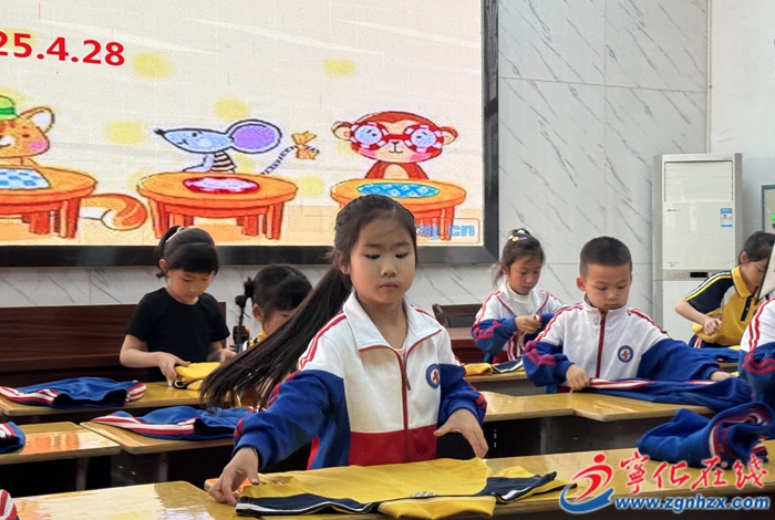 賽場(chǎng)上,低年級(jí)學(xué)生疊衣服、系鞋帶;中年級(jí)同學(xué)削果皮、縫紐扣;高年級(jí)學(xué)生整理行李箱;六年級(jí)學(xué)生更以征文歌頌平凡崗位上的奉獻(xiàn)者。現(xiàn)場(chǎng)氣氛熱烈,賽后,學(xué)校對(duì)“勞動(dòng)小能手”進(jìn)行表彰。