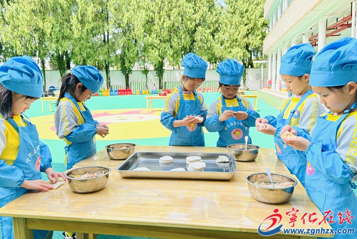 隨后,幼兒園分年段開展趣味勞動實踐。小班參與整理被子、疊衣服等生活技能活動;中班體驗擦桌子、捉泥鰍等勞動;大班開展洗罩衣、制作水餃等實踐。孩子們在動手過程中感受勞動的成就感,培養責任感。