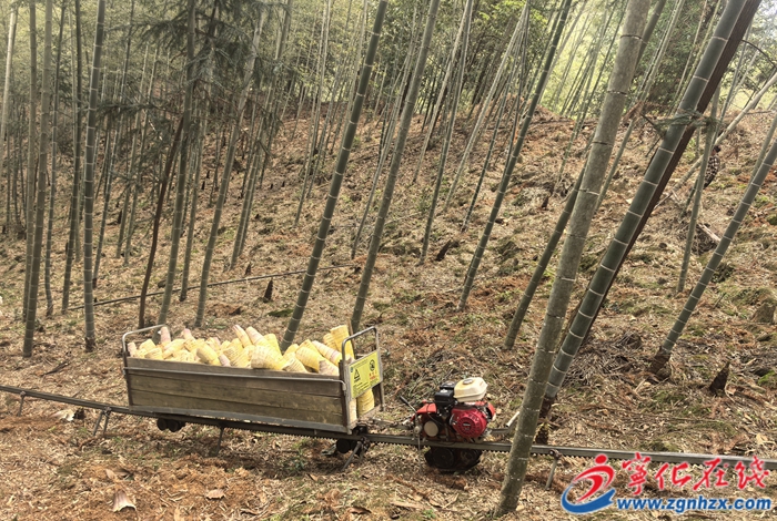 走進(jìn)吳永林的竹山,密密麻麻地長(zhǎng)滿了破土而出的春筍,林中的蓄水池、噴灌、竹山軌道等設(shè)施格外引人注目。“去年遇上干旱天氣,有蓄水池噴灌,竹筍產(chǎn)量沒(méi)受到影響?!眳怯廊收f(shuō),通過(guò)竹山軌道運(yùn)輸春筍,以前要請(qǐng)10多個(gè)工人,現(xiàn)在五六個(gè)就夠了,省錢(qián)又方便。