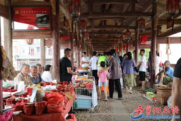 距離三葉青館不遠的維藩橋上早已圍滿了來趕集的游客。地道的水茜特色小吃勺子粉、仙草凍、米粿,還有客家美食區的兜湯、煎包、坨子看得人眼花繚亂。游客還可以近距離觀賞省級非遺木偶戲表演,親身感受優秀傳統文化的魅力。“鎮里搞活動來了很多外地游客,攤子半天時間就賣出了200多碗仙草凍,是平常的兩三倍。”村民黃阿婆看著銷售一空的仙草凍喜笑顏開。