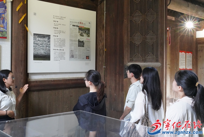 “現在我們所在的甯家大院是紅十二軍暨新獨立七師駐地舊址,始建于清代乾隆六年,也就是1741年……”跟隨講解員的步伐,游客們走進甯家大院。“九井十三廳”的布局和兩段紅色革命歷史故事讓人印象深刻,墻上保存的“飛機的認識”宣傳畫吸引不少游客駐足。