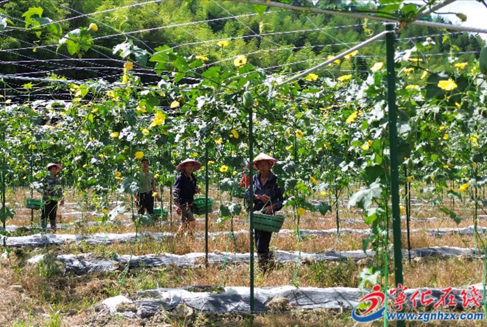 眼下正值盛夏時節,濟村鄉三村村閩臺農業融合發展推廣基地迎來了蘋果絲瓜的生產旺季,農戶們趁著晴好天氣忙碌采摘,基地里處處洋溢著豐收的喜悅。