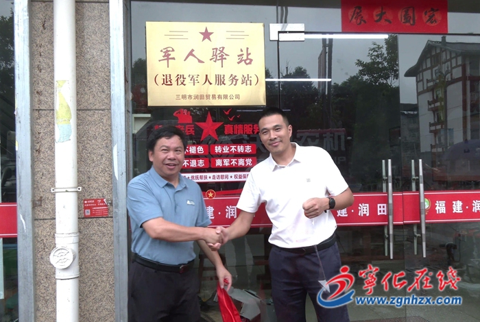 為積極響應國家對軍人軍屬、退役軍人和其他優撫對象的關懷政策,近日,寧化縣退役軍人事務局與寧化農信聯社、三明市潤田貿易有限公司、寧化福寧醫院舉行軍人驛站(退役軍人服務站)揭牌儀式,為軍人軍屬、退役軍人和其他優撫對象在提供優先、優質、優惠的政策,營造尊崇軍人、關愛退役軍人的良好社會氛圍。