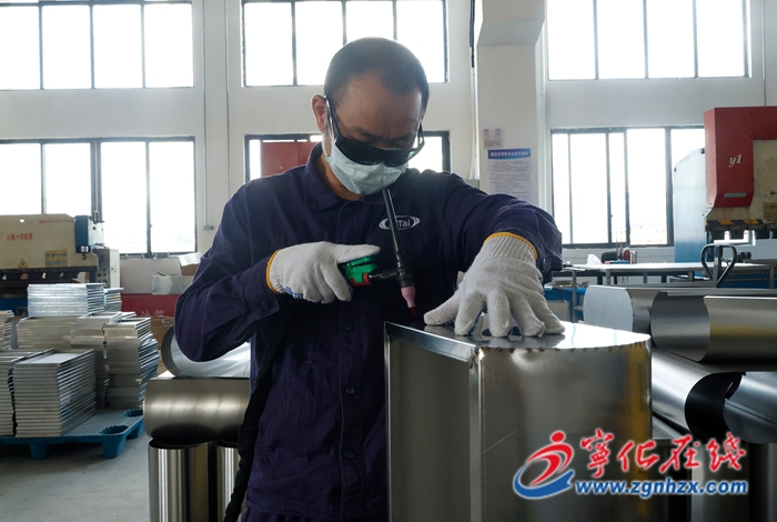 近日,記者走進該公司的生產車間,機器運轉的轟鳴聲此起彼伏,工人們正忙著進行焊接、打磨、數碼激光切割、數控折彎、文字絲印等工作,一道道工序井然有序,現場一派繁忙的生產景象。