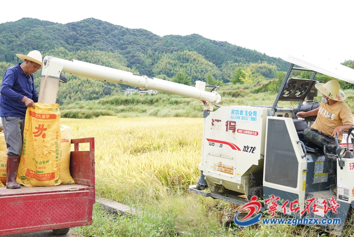 眼下,正值秋收農忙時,寧化縣水茜鎮河龍貢米迎來豐收。收割機在田隴間來回穿梭,糧農將脫粒后的稻谷裝袋、打包、運送,臉上洋溢著豐收的喜悅。
