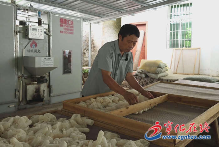 竹蓀被譽為“菌中皇后、山珍之花”,是珍貴的食用菌之一,因其體態優美、營養豐富、口感爽脆,近年來受到眾多消費者的青睞。方田鄉南城村擁有林地面積17000畝,憑借其生態資源、豐富的勞動力資源等特色優勢,吸引在外鄉賢回寧投資,建設高標準現代食用菌生產基地,不僅實現從菌種培育到成品加工的全鏈條標準化生產,更讓產業發展的紅利實實在在惠及村民。目前已帶動50余名村民就業增收,還為村集體經濟帶來每年1.5萬元的穩定收益。
