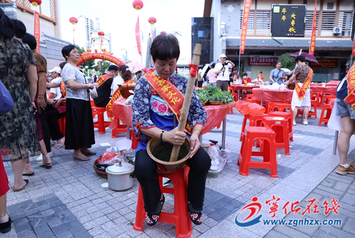 比賽由寧化縣文旅局主辦,以“非遺傳承 健康生活”為主題,有27組54名選手參加,各組參賽選手精心準備了擂茶工具,青草藥、花生、芝麻、炒米、炒豆及其他配料,比賽要求選手在規定時間內制作擂茶一缽。