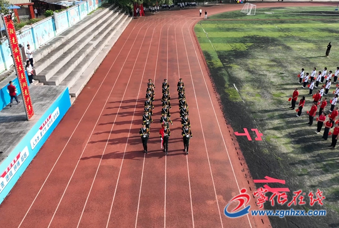 在莊嚴(yán)的升旗儀式中,由學(xué)生組成的國(guó)旗護(hù)衛(wèi)隊(duì)邁著鏗鏘有力的步伐,護(hù)衛(wèi)著五星紅旗走向升旗臺(tái),隨著雄壯的《義勇軍進(jìn)行曲》奏響,全體師生注視著鮮艷的五星紅旗冉冉升起。