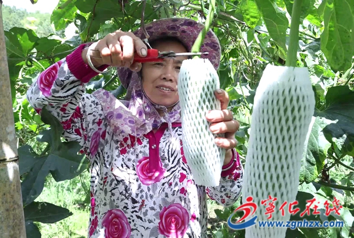 同樣,在水茜鎮棠地村的絲瓜種植基地內,一根根青翠欲滴的臺灣肉絲瓜懸掛在藤蔓上,瓜農們穿梭在藤蔓間,一邊給絲瓜套袋保護,一邊采摘成熟絲瓜,隨后快速打包裝箱,運往外地。