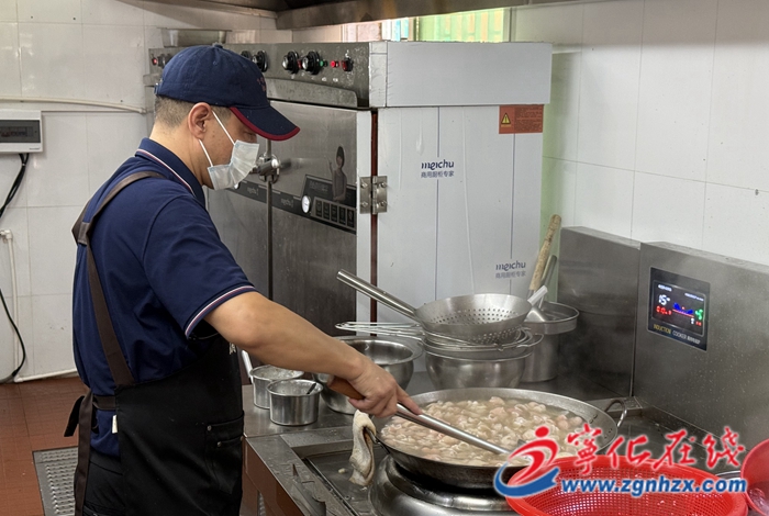 “土豆牛腩、鹵雞腿、黃瓜炒雞蛋,還有饅頭包子……”傍晚時(shí)分,寧化縣政府機(jī)關(guān)食堂飄出陣陣香味。走進(jìn)后廚,烹飪區(qū)、洗消區(qū)、備餐區(qū)等功能區(qū)域布局合理,廚房設(shè)施設(shè)備齊全,師傅們身著整潔工作服、頭戴工作帽、佩戴口罩,忙碌不停。