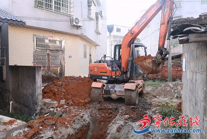 近日,走進寧化縣城郊鎮高塹片區老舊小區改造項目現場,工人們正進污水、雨水管網鋪設和人行道施工。