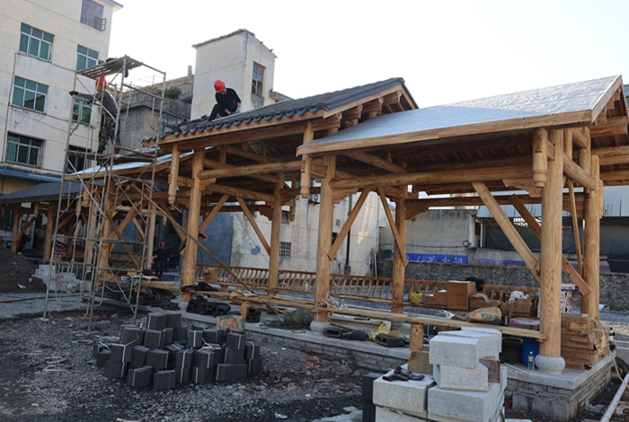 “目前已完成了涼亭的主體建設(shè)和長(zhǎng)廊的主體建設(shè)及公廁的主體建設(shè),下一步計(jì)劃進(jìn)行地面的硬化和鋪設(shè)及綠化建設(shè),預(yù)計(jì)今年1月底可以完工。”湖村鎮(zhèn)村建站站長(zhǎng)李祥軍介紹。