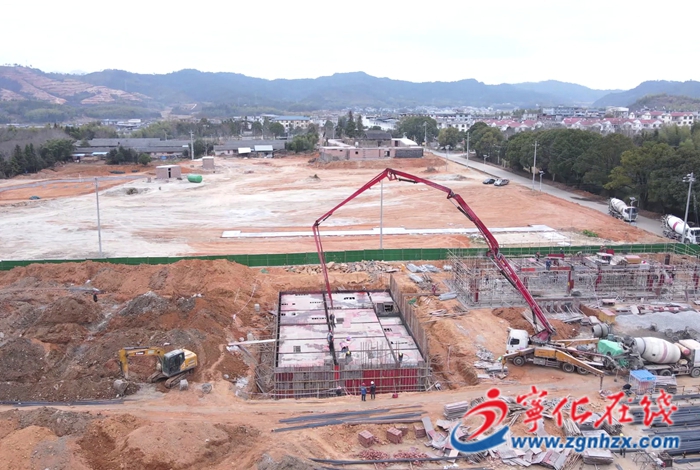 近日,在長征寧化國防軍旅園項目建設現場,工人們正進行紅色餐飲區域的屋頂水泥澆筑。混凝土攪拌機與泵車協同作業,將水泥輸送至施工點,現場作業有序推進。