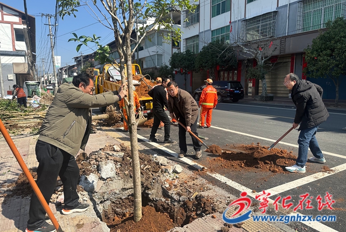 參與活動的干部群眾三五人一組,分工明確、配合默契,大家揮鍬鏟土、扶苗填坑、提水澆灌,每道工序有條不紊。一番勞作后,街道兩旁閑置空地上的36株桂花樹迎風挺立,在春日暖陽中舒展枝丫,煥發出勃勃生機,為初春的鄉村大地繪就一抹清新綠意。
