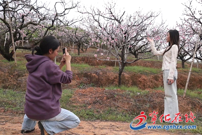 走進桃園,層層疊疊的桃花綴滿枝頭,花瓣嬌嫩欲滴,目之所及皆是粉色浪漫。游客們三五成群,或在花海中漫步徜徉,或駐足拍照留影,手機鏡頭定格下桃花與春日美景交融的瞬間。