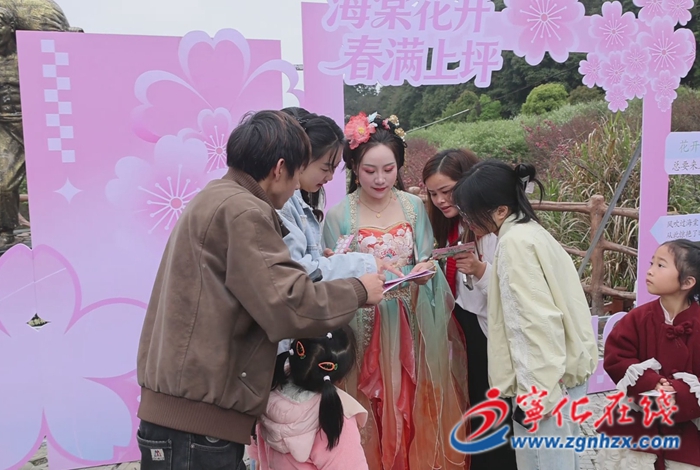 最受游客歡迎的當(dāng)屬海棠花海游園會(huì),游客們領(lǐng)取游園任務(wù)卡后,開(kāi)啟趣味闖關(guān)之旅。詩(shī)詞飛花令、猜花謎等十二項(xiàng)趣味任務(wù),讓游客們?cè)谟瓮嬷辛私夂L奈幕⒏惺艽喝杖の丁4蠹掖┧笤诨ê5母鱾€(gè)任務(wù)點(diǎn),積極參與闖關(guān)集章,兌換精美禮品,讓游客們乘興而來(lái),滿載而歸。