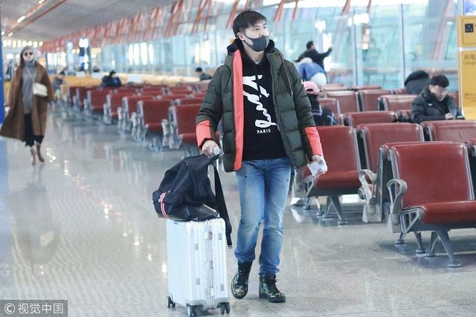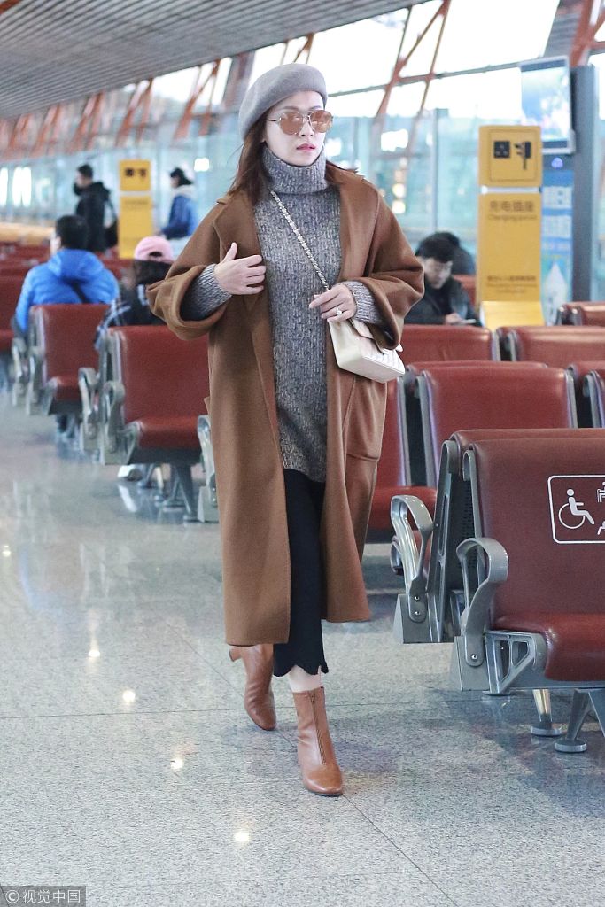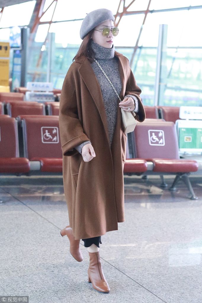 葉一茜田亮夫妻現身機場,葉一茜貝雷帽配焦糖大衣氣場飆升。