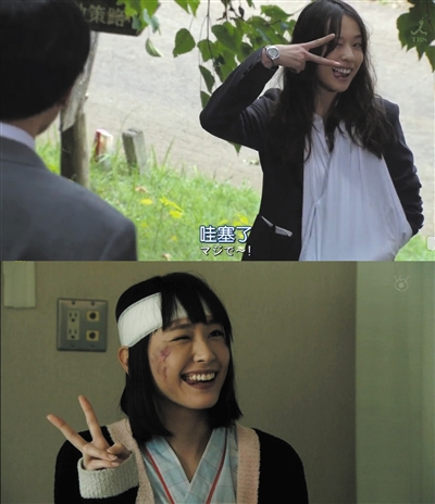 2004年,新垣結衣初嘗演戲滋味,和眾多沖繩出身的演員一樣,走的是“辣妹”路線。這一時期她參演的作品包括經典的《龍櫻》,劇中可以看到一個小麥色皮膚、畫著安室奈美惠同款細眉的她。而真正讓觀眾認識新垣結衣的是2006年“格力高Pocky”的廣告,廣告中她面帶招牌式微笑跳著“pocky舞”。有趣的是,2016年《逃避可恥但有用》片尾“戀舞”的流行,仿佛是對十年前的新垣結衣的一次回應。