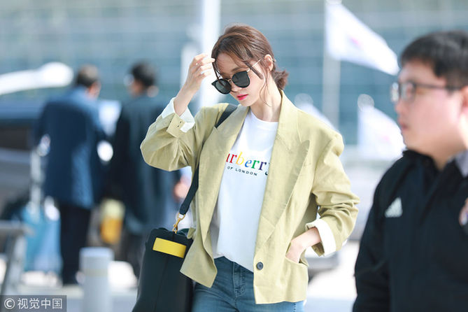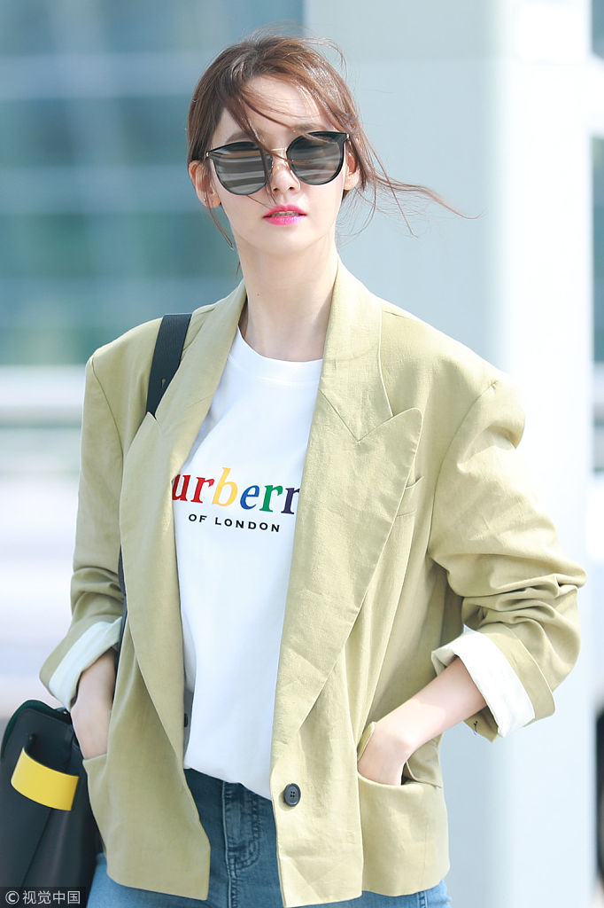 2018年3月16日,韓國首爾,韓國女子組合少女時代成員允兒現身仁川機場。
