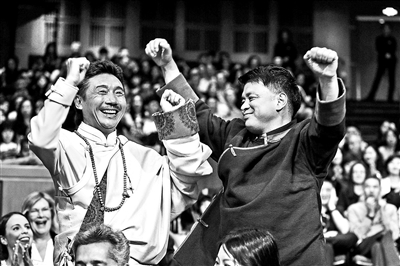 ▲影片《阿拉姜色》導(dǎo)演松太加(右),演員容中爾甲