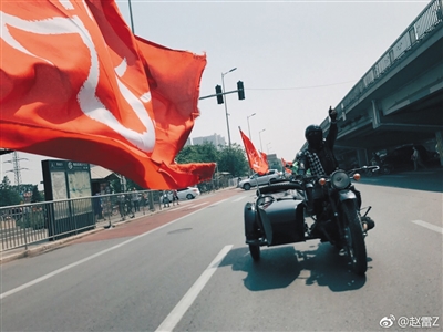 騎行在北京大街上的趙雷。圖/藝人微博
