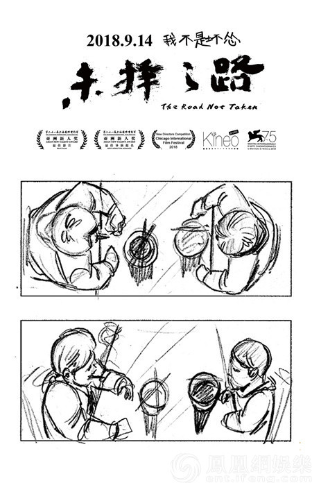 在電影的創作、拍攝過程中,分鏡頭的拍攝、畫面的精致、故事的完整等,均需要幕后團隊仔細斟酌。電影《未擇之路》的創作過程亦是如此,這點從該片今日全新曝光的一組分鏡圖中便可見得。流暢的線條將二勇和尕娃小攤上吃飯,二勇和小眉卡車邊的初遇,以及三人路邊吃瓜的場景細細勾勒而出,三個主要的人物形象也展現出了各自的特征,呈現出良好的畫面效果。而據導演唐高鵬此前透露,影片在創作中繪制了2100多張分鏡圖,且在拍攝過程中不斷調整構圖、光影等,嚴謹的態度可見一斑,同時也讓觀眾對該片期待值大增。