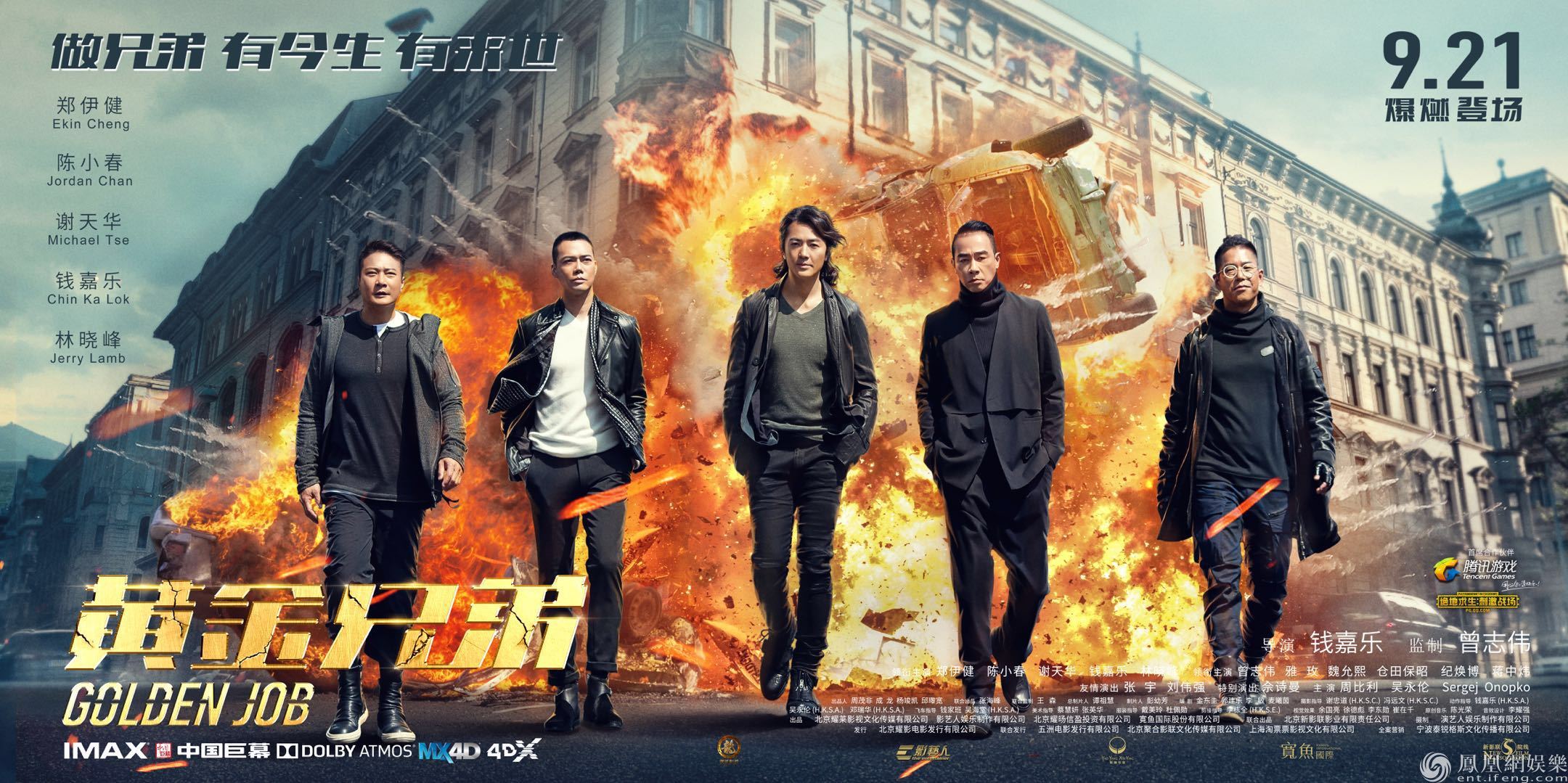 據(jù)悉,《黃金兄弟》由錢嘉樂導演,曾志偉監(jiān)制,鄭伊健、陳小春、謝天華、錢嘉樂、林曉峰、曾志偉、雅玫、魏允熙、倉田保昭主演,張宇友情出演,佘詩曼特別出演,由北京耀萊影視文化傳媒有限公司、影藝人娛樂制作有限公司、北京耀旸信盈投資有限公司、寬魚國際股份有限公司、北京新影聯(lián)影業(yè)有限責任公司出品。9月21日上映,即將爆燃中秋,同時,影片將以IMAX、DOLBY ATMOS、中國巨幕、4DX、MX4D、2D多制式登錄各大院線,IMAX超強的視覺效果令人期待。