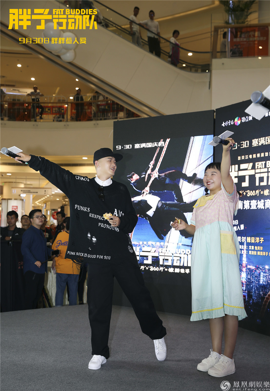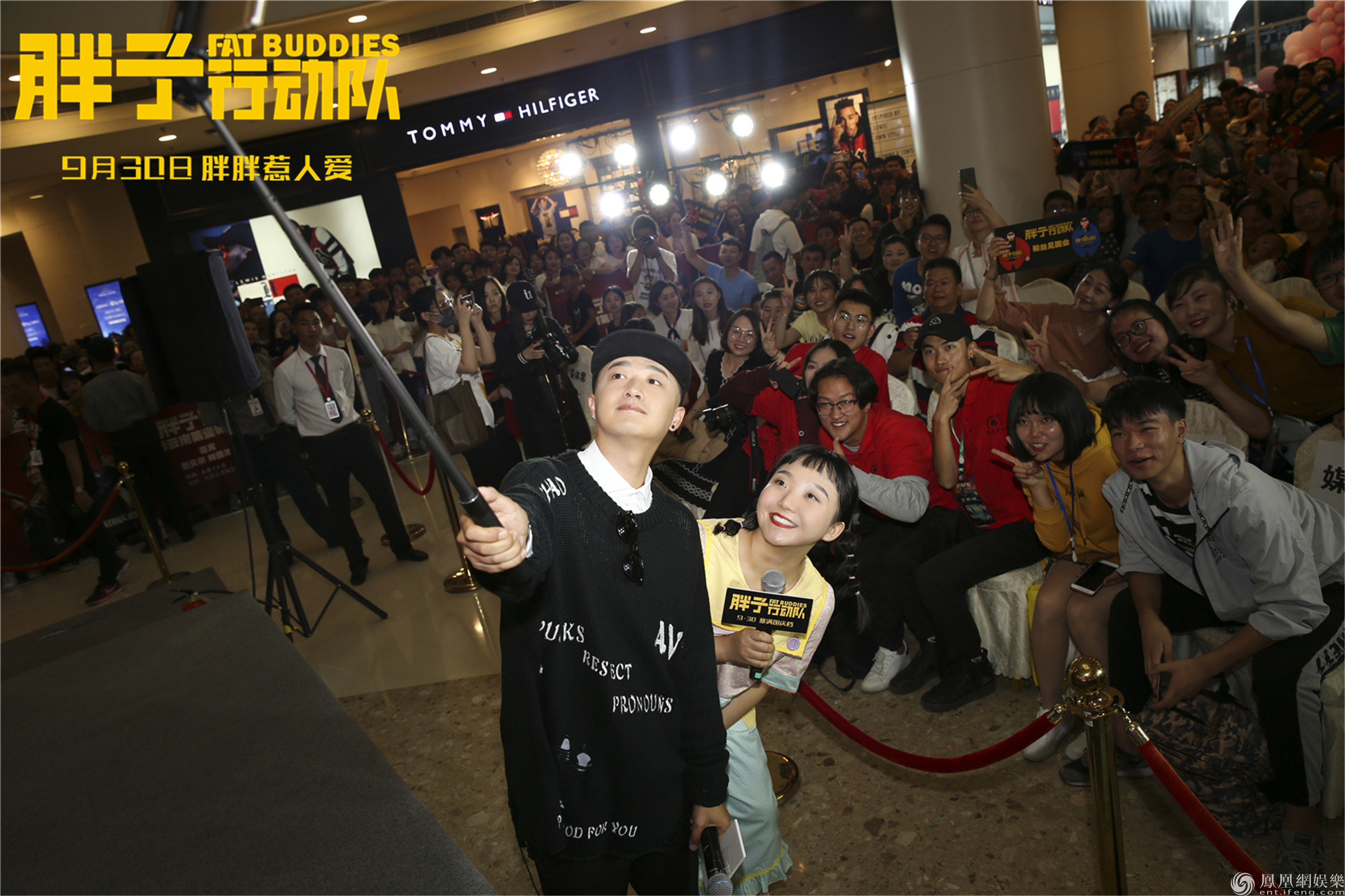 中秋佳節當天《胖子行動隊》主創包貝爾、辣目洋子來到昆明,繼續全國“最大碼”路演行程。這次兩位主創來到昆明商場,與現場觀眾分享影片鮮為人知的拍攝幕后故事。包貝爾、辣目洋子一出場,首先用影片中的角色出場方式跟觀眾打招呼,引得臺下笑聲連連?!杜肿有袆雨牎纷鳛橐徊肯矂幼饔捌悹柋硎荆?ldquo;它是一部國慶節期間再合適不過的合家歡首選。從完成成片到現在的每個月,不同的專業團隊看片測評成績比普通喜劇片分數高出20-30分。”