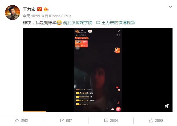不過,在活動結束時卻鬧出了烏龍。王力宏乘車離開時,有不少路人對著車窗激動大喊“劉德華”,這一幕被王力宏的直播鏡頭記錄了下來。隨后王力宏發布微博,稱“昨夜,我是劉德華”。