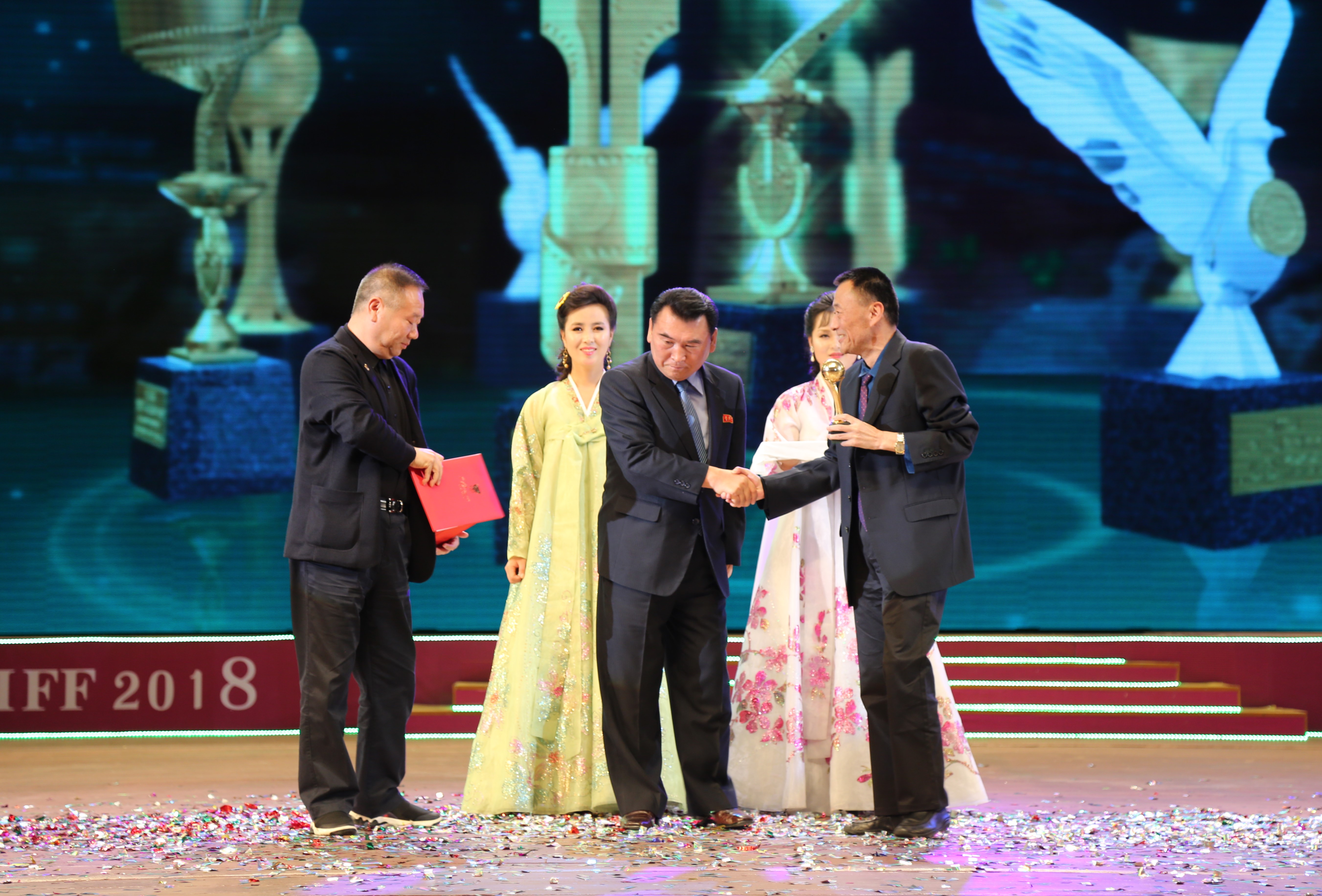 平壤電影節組委會委員長、朝鮮文化相樸春男親自向出品方代表頒獎