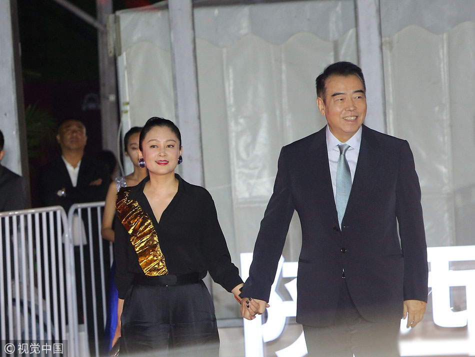10月8日,在陜西西安舉行的第五屆絲綢之路國際電影節的開幕式紅毯上,陳凱歌牽手陳紅亮相,羞澀擺拍恩愛十足。