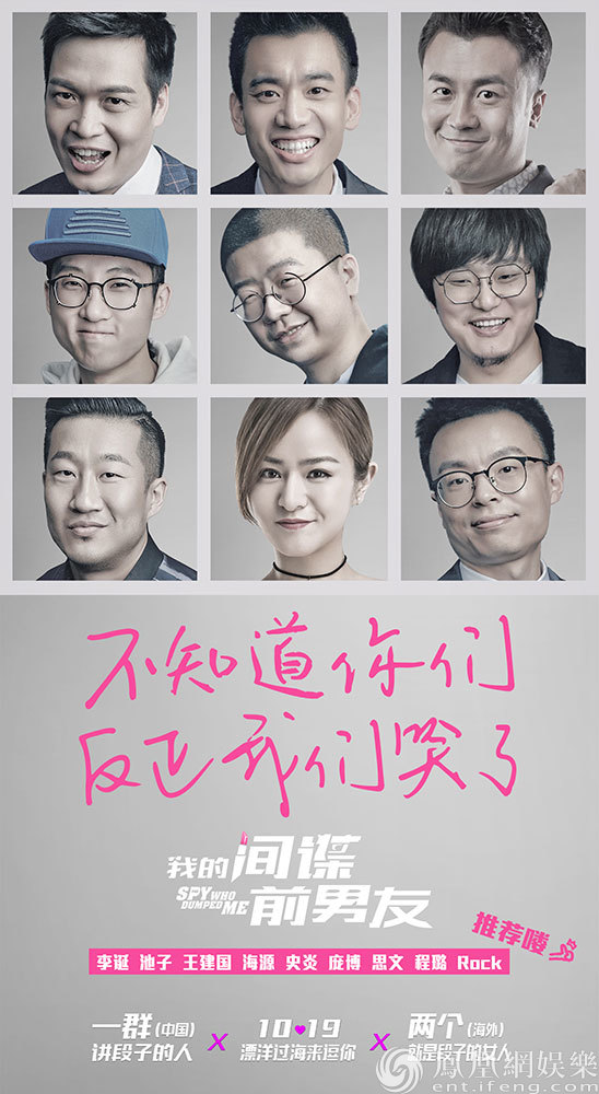 逗笑段子手的電影到底是什么樣的?今日,電影發布一組海報,來自《吐槽大會》的人氣段子手李誕、池子、王建國、龐博、思文、程璐、ROCK、史炎、海源為電影《我的間諜前男友》實名打call,齊聲呼喊:“不知道你們,反正我笑了。”