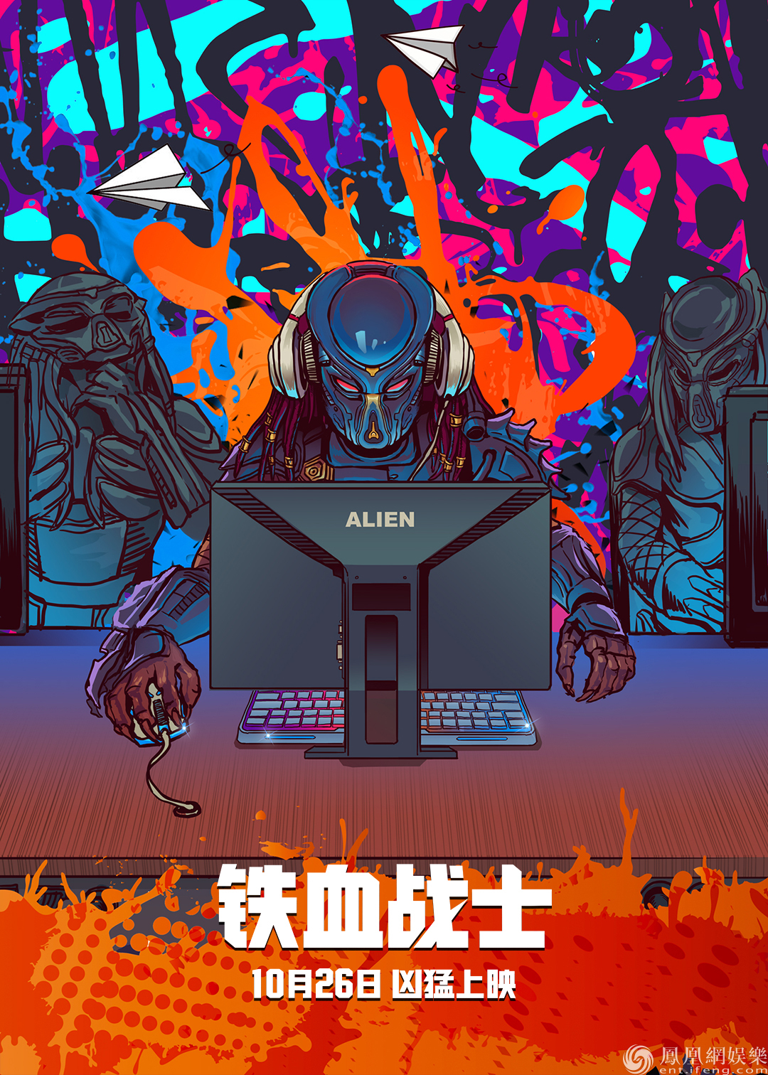 由二十世紀福斯出品、《鋼鐵俠3》導演沙恩·布萊克執導的好萊塢科幻動作冒險大片《鐵血戰士》即將在10月26日內院線上映,將終結近兩個月的“好萊塢片荒”,并打響“好萊塢保護季”的第一炮!影片之前在北美上映,順利獲得首日和首周末的票房冠軍,勢頭正勁。近日《鐵血戰士》曝光了一組潮流文化海報,海報中宇宙最強獵手鐵血戰士滑板、打游戲、籃球、街舞無所不能,玩轉娛樂躋身潮人界。