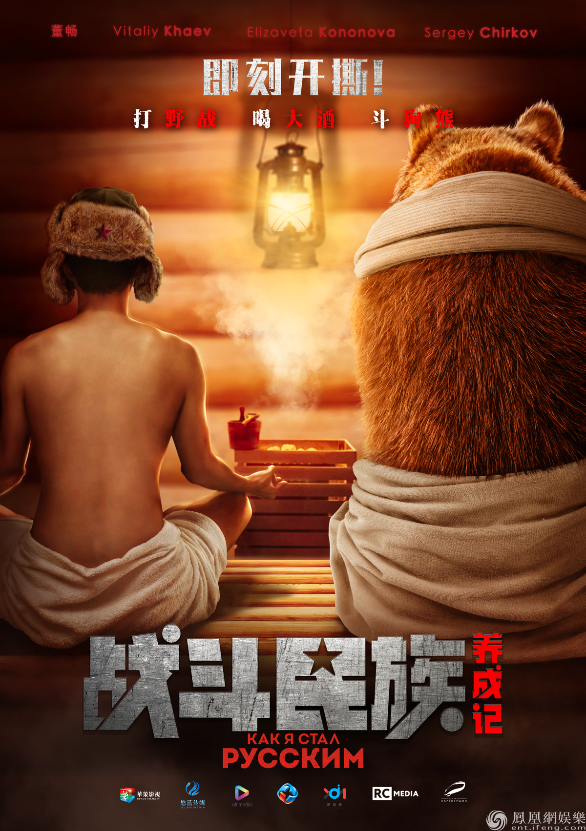 今日,改編自豆瓣9.1高分神劇《戰斗民族養成記》電影版曝光了“即刻開撕”版概念海報和先導預告。海報中人熊并排坐在桑拿房中的設定充滿緊張感和喜劇色彩。預告中,更是將“戰斗民族”彪悍的民風和俄羅斯文化展現的淋漓盡致,喜感十足。該部影片講述了上海小伙彭鵬為了追求真愛遠赴俄羅斯,攻略彪悍岳父大人的異國奇遇,各種腦洞大開啼笑皆非的戰斗風考驗,都讓觀眾十分期待。