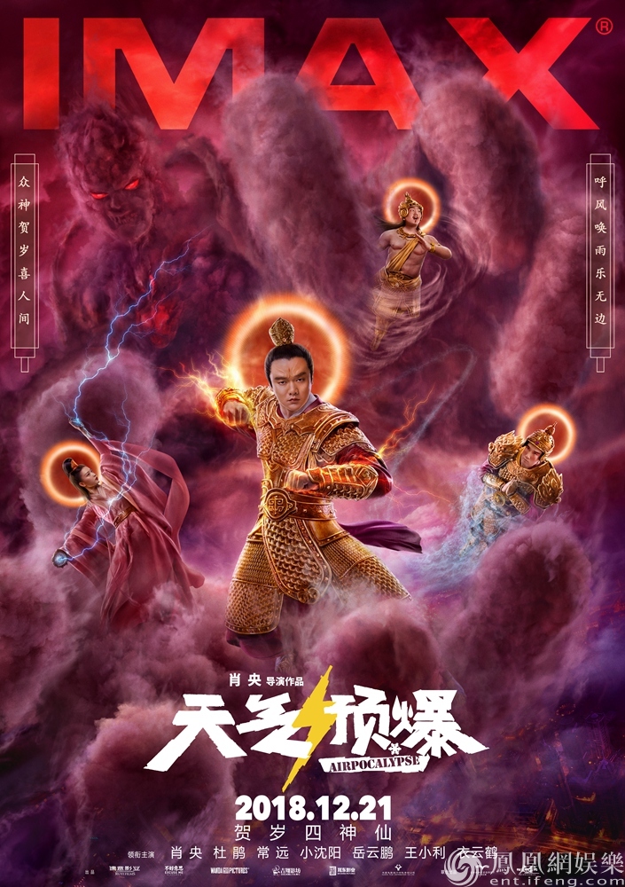 《天氣預(yù)爆》的這一版IMAX版海報中,曝光了“風(fēng)雨雷電”四神與反派濃霧“大BOSS”之間的一場神仙大戰(zhàn)。肖央(飾補(bǔ)位雷神馬樂)身披黃金甲,一馬當(dāng)先英武非常;杜鵑(飾電母)手持法器電光鏡“驅(qū)霆策電”,盡顯女神卓越身姿;常遠(yuǎn)(飾雨神)雙手合十“凝露化雨”,乘浪升空;衣云鶴(飾風(fēng)伯)隨意瀟灑擺手便可“引風(fēng)推云”御風(fēng)飛行。如此一副精彩紛呈的畫面,展示了電影《天氣預(yù)爆》既有西方震撼視覺的“大片感”,又極具東方神話的風(fēng)韻。