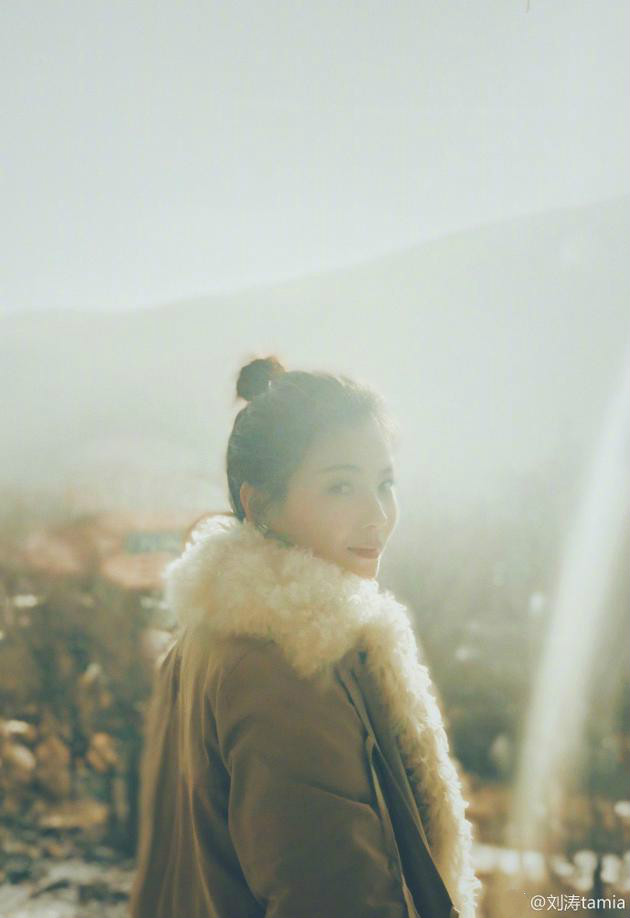 照片中,劉濤身穿厚厚的外套,扎著高高的丸子頭,扭頭看著鏡頭,陽光照射下來,顯得更加的迷人。