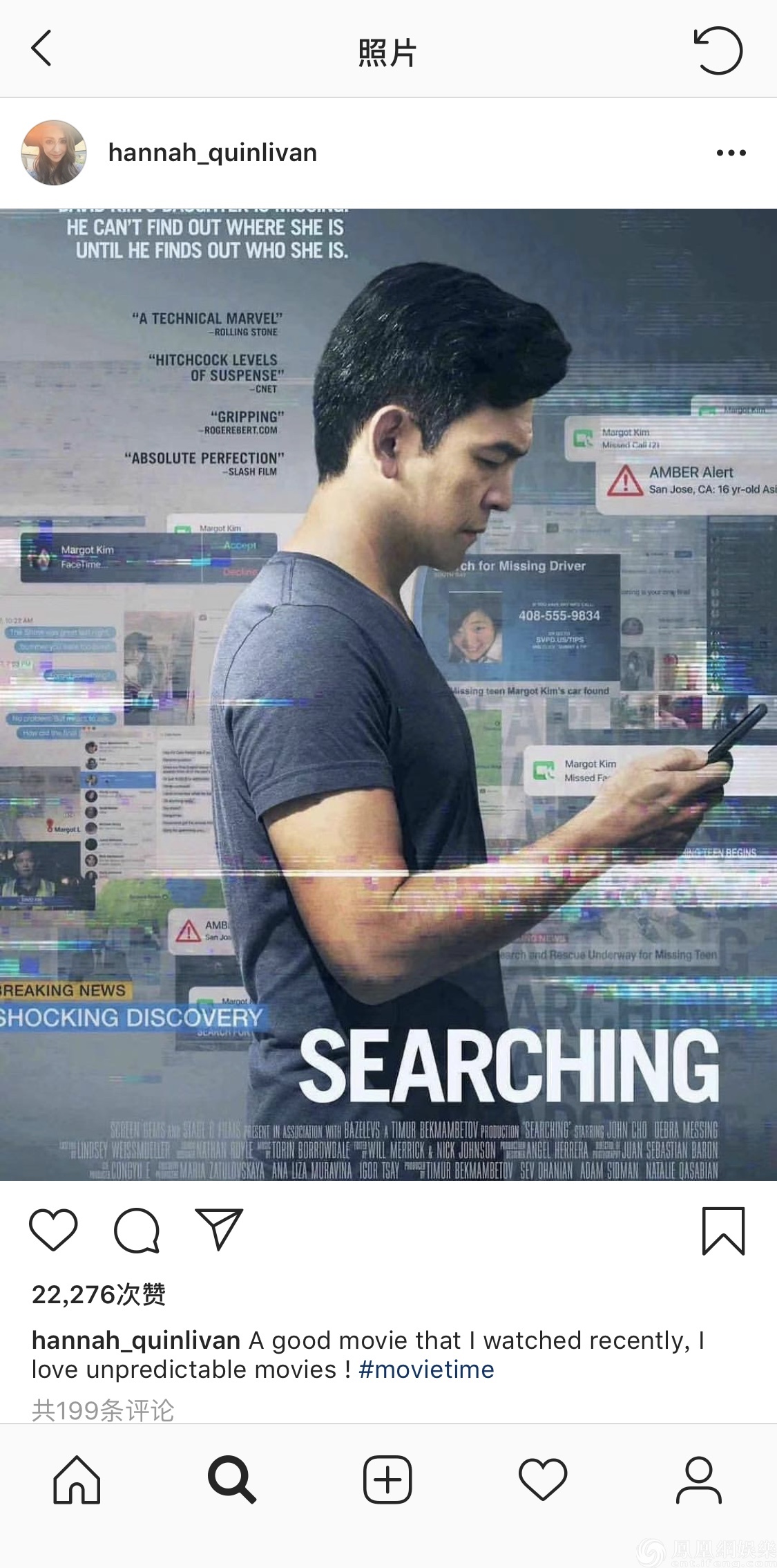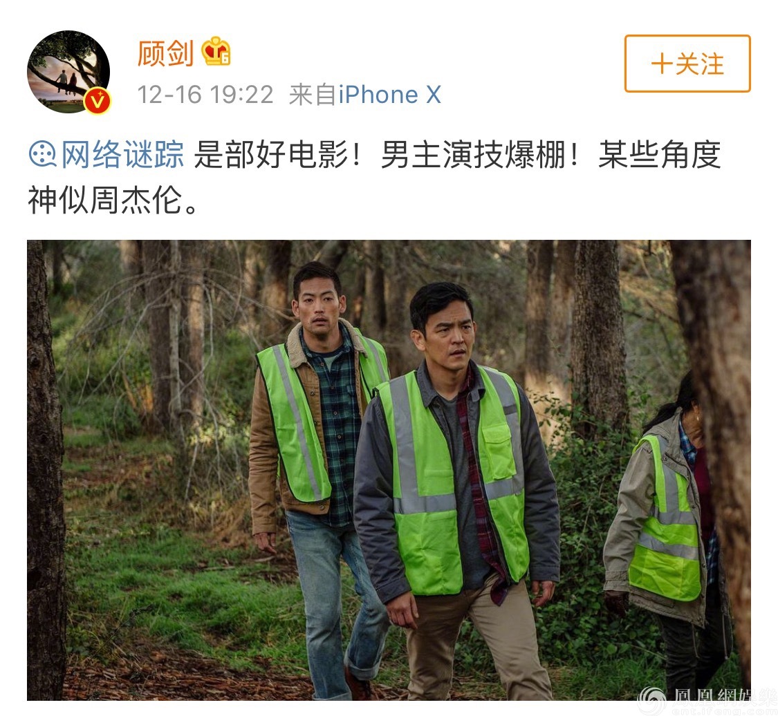 電影上映后,電影新奇的拍攝方式,及對互聯網時代的頗多映射,引發了不少觀眾的熱議。有趣的是,主演約翰·趙因為長相酷似“周杰倫”,也讓網友一度“臉盲”,調侃《網絡謎蹤》其實是由周杰倫主演的,“周杰倫新片《網絡謎蹤》真的很好看,真情實感地演繹了一個寵女狂魔”,“形式新穎,‘周杰倫’表演到位并且賊帥!”還有網友腦洞大開地幻想:“約翰·趙如果來華宣傳,就會變成真假周杰倫哈哈哈哈。”