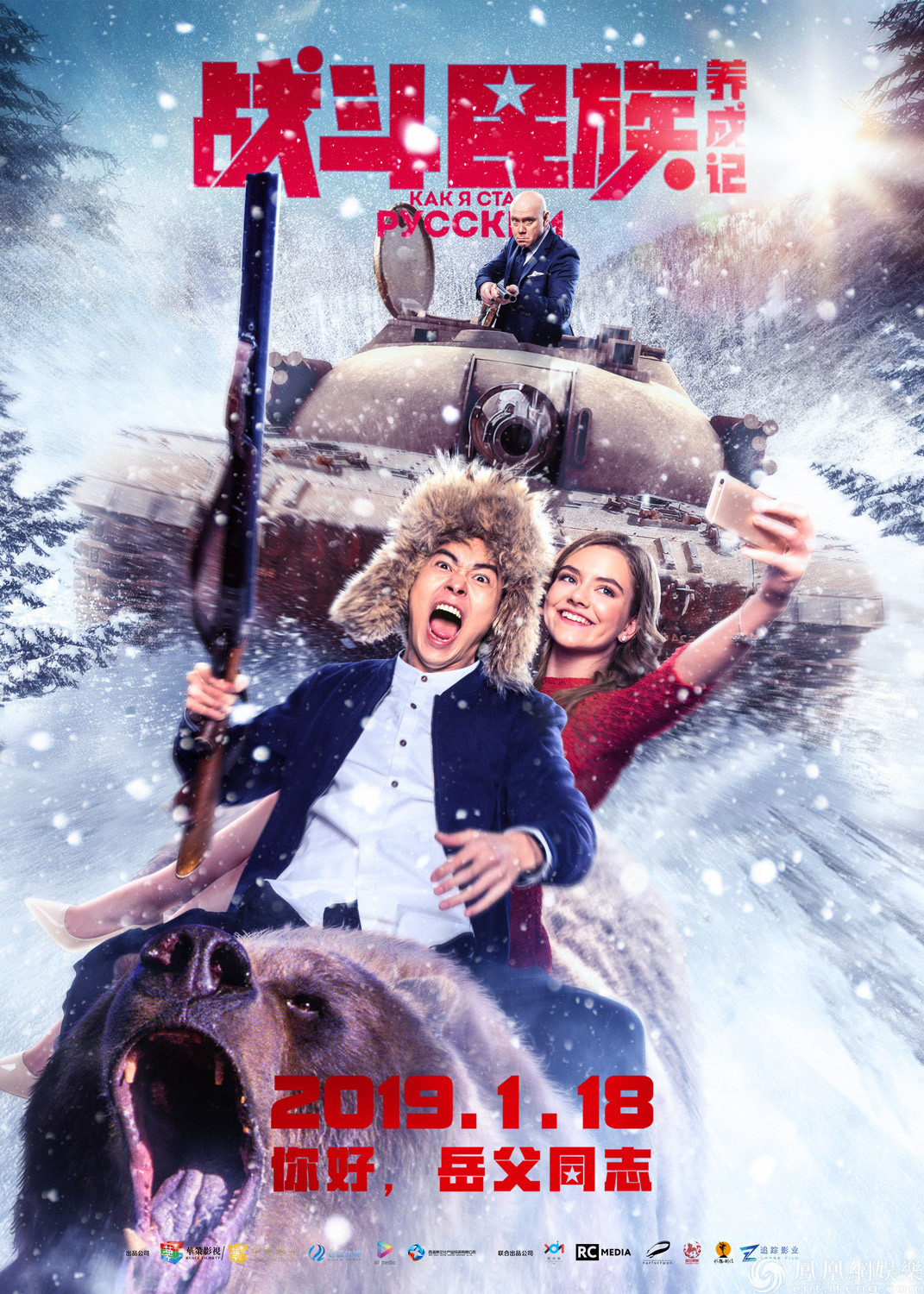 愛情喜劇電影《戰斗民族養成記》由阿卡季·薩何拉什維利和夏昊共同執導,董暢、維塔利·哈耶夫、麗薩·加納諾娃、謝爾蓋·切爾科夫等主演,浙江華策影視股份有限公司、悠藍傳媒徐州有限公司、全媒體有限責任公司、青島西海岸文化產業投資有限公司出品,寧波梅山保稅港區常盛投資管理有限公司、北京永旭良辰文化發展有限公司、北京追蹤者也影業文化有限公司、北京盛世麒麟文化傳媒有限公司聯合出品。影片即將于1月18日全國上映,上海女婿趣逗戰斗民族岳父,等你來看!