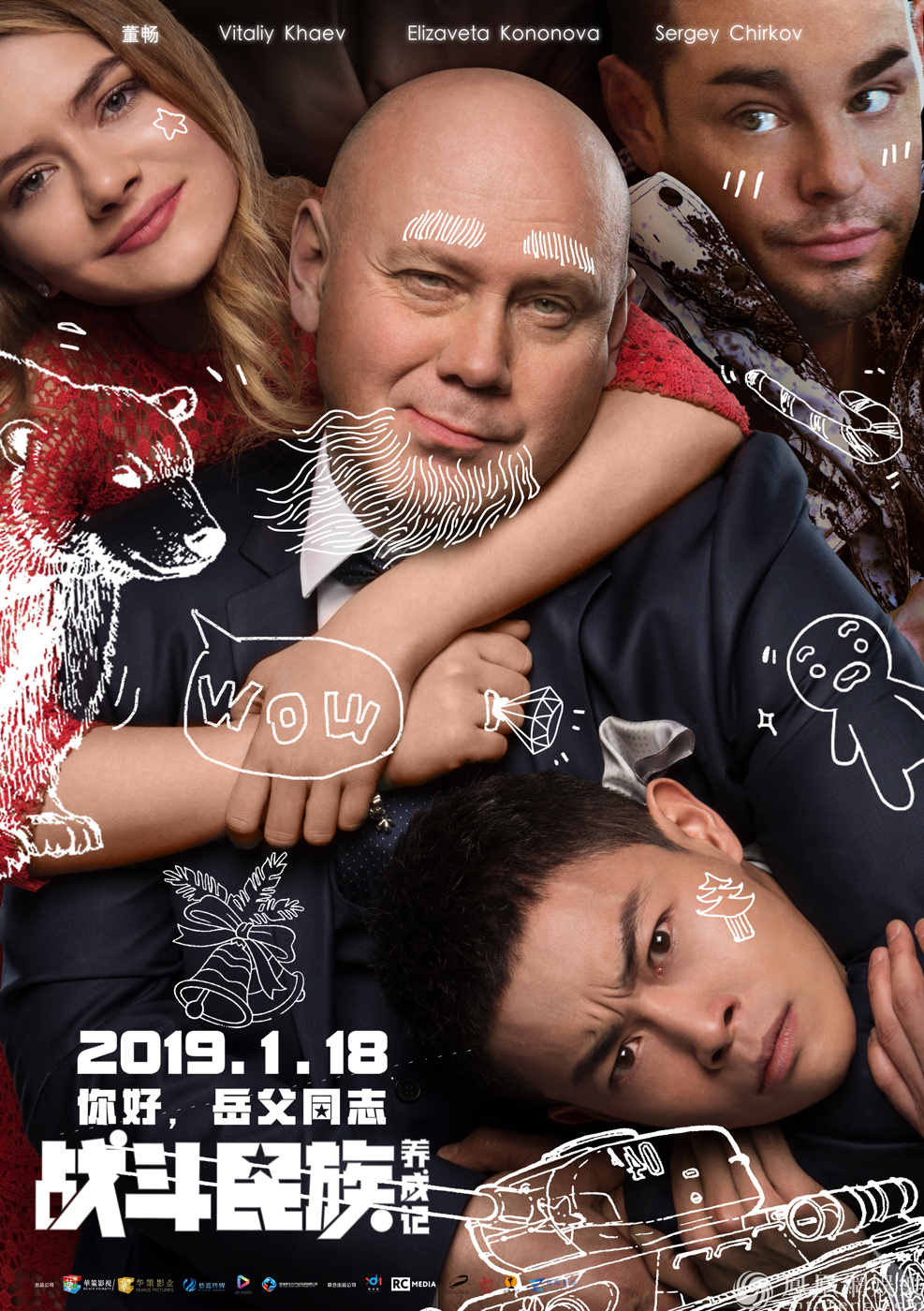 即將于1月18日全國上映的愛情喜劇電影《戰斗民族養成記》今日曝光了“圣誕休戰”版海報,彪悍岳父被涂上白胡子化身圣誕老人,攜上海女婿、“小公主”伊拉和搞怪前男友一起,襯著歡快的節日氣氛向觀眾送上祝福。彪悍的戰斗民族遇上可愛的圣誕涂鴉,網友們都覺得“岳父看起來萌萌噠”。
