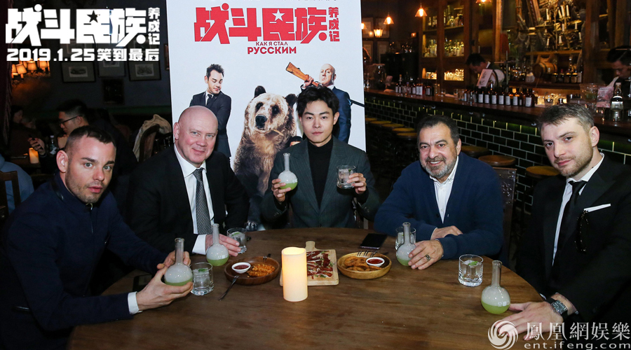 近日,“戰斗男團”三位男士在沒有女主伊拉的“管控”下,集體空降三里屯一酒吧,與現場顧客共同啟動“戰斗民族開年酒局”,上演酒量比拼戰。“男人幫”接連下肚電影《戰斗民族養成記》的專屬定制伏特加酒,圍觀的群眾紛紛贊嘆:“俄羅斯人不愧是把伏特加當水喝的民族”。不僅如此,“寡頭爸爸”實力還原了電影中的情節,邀請粉絲來了一場戰斗民族輪盤賭的喝酒游戲,互相戲說繞口令場面也十分爆笑。酒酣時,羅馬爆發了強烈的創作欲,在電影《戰斗民族養成記》的主海報上進行即興涂鴉,將三位主創的臉畫得十分搞怪。