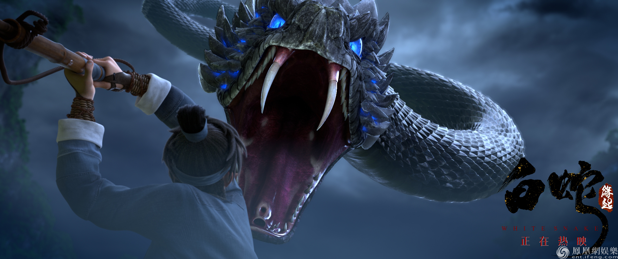 今日電影《白蛇:緣起》發(fā)布的“水上激戰(zhàn)”版打斗片段展現(xiàn)了小白和阿宣在這段冒險(xiǎn)旅程中遇到的一次水上劫難。片段一開始便傳遞出肅殺的氛圍。只見畫面中河水湍急,霧氣濃重,整個(gè)河谷變得幽暗。這樣的場(chǎng)景使得小白與阿宣也不由得皺緊眉頭。在一片寒氣逼人的氛圍中,他們的前方出現(xiàn)了一條來歷不明的小船。小船突然發(fā)力,一條巨大無比的波浪向著他們迎面而來。而船上戴斗笠的神秘人臉上蛇鱗突起,變成一條巨大的蛇向著船展開猛烈攻擊。而這個(gè)神秘人便是蛇妖常盤,與白蛇同宗同源。作為同族,此次常盤與小白爭鋒相對(duì)的原因讓人好奇,也不禁讓人擔(dān)心小白的蛇妖身份是否在此處暴露?她又該如何面對(duì)自己的同族?