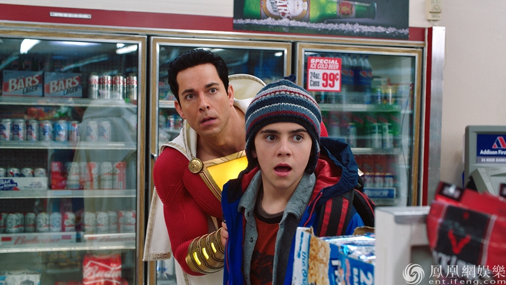 在最新曝出的正片片段中,兩個“倒霉蛋”劫匪搶劫超市卻不曾料到遭遇了初為英雄的沙贊,不僅充當了一次測試“防彈”技能的最佳“男配”,還被男主沙贊大力扔出后落荒而逃。沙贊肌肉猛男外表之下,實則有一顆中二歡樂的心,花式笑料和神梗不斷涌現。觀眾看完電影紛紛表示“笑果”出眾,“沙贊不是所羅門的智慧,是鎖了門的智慧”“能看到這么單純傻樂的DC電影也是不容易,真是各種笑死”“截至目前DC最有趣的超級英雄片,無比歡樂,娛樂指數滿格”。更有觀眾怒贊“雷霆沙贊用了更加娛樂化的方式,講了個類似于‘小偷家族’的主題”。比利成為天選之子的過程也是令人驚嘆這位小老弟簡直運氣好到爆,有觀眾笑稱“其他英雄要么是遇到特殊事件,要么是天賦異稟,敢情沙贊是海選出來的啊”“巫師好像圣誕老人哦,選一個最乖的孩子送禮物”。